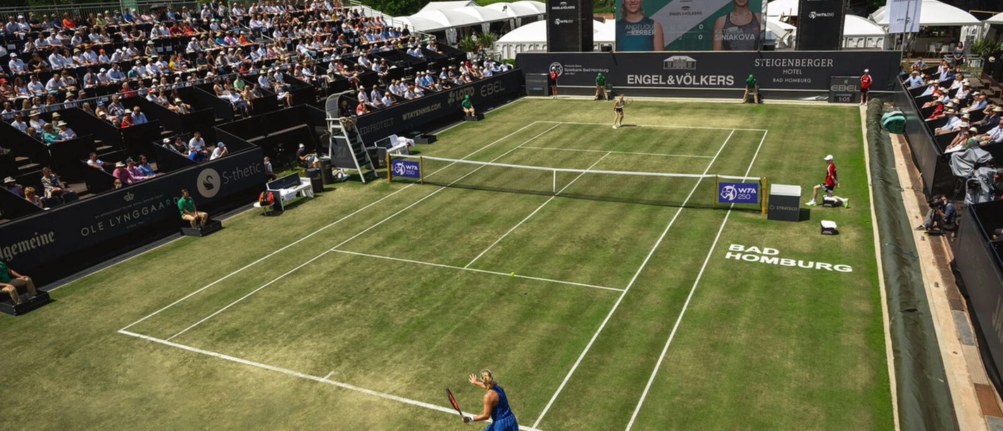 Erlebe die Magie von Rasentennis hautnah! Die Bad Homburg Open powered by Solarwatt versprechen auch im TEnnissommer 2026 Weltklassetennis und jede Menge Wimbledonflair im Kurpark Bad Homburg.