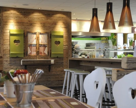 Dass Fast Food und gesunde Ernährung sich nicht ausschließen, zeigen Heidi und Paul. Hier sind frische Bio-Zutaten und schonende, fettarme Zubereitung - in der offenen Showküche - selbstverständlich.
