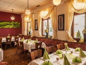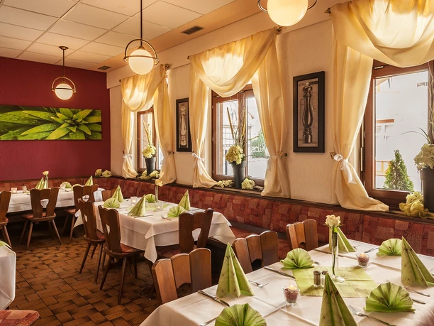 Das gutbürgerliche Restaurant bietet Ihnen wöchentlich wechselnde Köstlichkeiten der hessischen und deutschen Küche, darunter typische Spezialitäten wie Rindfleisch in Grüner Soße. Für gehobene Ansprüche gibt es ein spezielle Auswahl an Gerichten und in der ständig wechselnden Zusatzkarte saisonale Leckerbissen. Sobald das Wetter es zulässt, steht Ihnen der idyllische Biergarten offen.