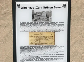 Mitten im idyllischen Ortskern von Altenhain, Bad Soden am Taunus, liegt das traditionsreiche Gasthaus Zum Grünen Baum. Bereits 1712 erstmals urkundlich erwähnt, steht es bis heute für gutbürgerliche, saisonale Küche und liebevolle Gastfreundschaft. Abwechslungsreich zubereitete Speisen mit regionalen Zutaten – darunter Apfelwein von der Apfelschmiede oder Forelle vom Forellengut Taunus – machen jeden Besuch authentisch und genussvoll.
