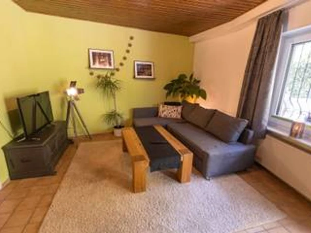 Diese gemütliche Ferienwohnung in Neu-Anspach im Taunus bietet auf etwa 70 Quadratmetern Platz für 2 bis 5 Personen. Sie verfügt über ein einladendes Wohnzimmer, ein gemütliches Schlafzimmer, eine voll ausgestattete Küche und ein charmantes Bad. Die Wohnung ist ebenerdig und barrierefrei über einen kurzen Fußweg nach unten zur Wohnung zugänglich. Sie verfügt über einen separaten Eingang, eine Terrasse zur Mitbenutzung sowie einen Parkplatz direkt vor dem Haus. Die ruhige Lage lädt zum Entspannen ein. Die Ferienwohnung liegt sehr zentral in Neu-Anspach. Von hier aus sind Geschäfte und Restaurants gut erreichbar, und in unmittelbarer Nähe findet man auch eine Eisdiele, die zum Genießen einlädt. Zudem sind öffentliche Verkehrsmittel bequem zu erreichen, was Ausflüge in die Umgebung erleichtert. Die ruhige, aber dennoch zentrale Lage lädt zum Entspannen und Entdecken ein. In der Umgebung von Neu-Anspach gibt es zahlreiche Freizeitmöglichkeiten für jeden Geschmack. Naturliebhaber können wunderbare Wanderungen und Fahrradtouren durch die malerischen Taunuslandschaften unternehmen. Für Abenteuerlustige bieten sich zum Beispiel die Eschbacher Klippen zum Klettern oder eine Kletterhalle direkt in Neu-Anspach an. Motorradfahrer können die kurvenreichen Straßen des Taunus erkunden. So kommt garantiert keine Langeweile auf!
