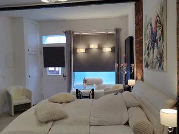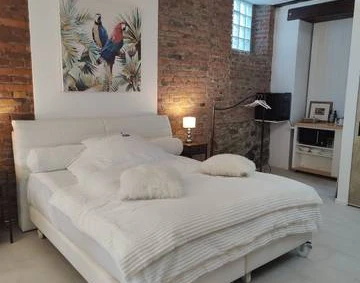 Mitten in der historischen Altstadt von Oberursel, in einer verkehrsberuhigten Straße gelegen, erwartet Sie unser exklusives 30 qm Loft im EG einer historischen Hofreite. In dem schönen Ambiente wurde mit viel Liebe “Alt“ und “Neu” vereint. Natursteinwände wurden restauriert und der Charme des historischen Hofladens erhalten. Das Loft ist ebenerdig, barrierefrei begehbar und mit eigenem Eingang. Integriert wurden Räume für Dusche und WC, ein kleine Theke mit Mikrowelle, Minikühlschrank, Kaffeemaschine, Induktionsfeld und Wasserkocher. Schlafen werden Sie in einem Boxspringbett wie auf Wolken (180cm x 200cm) und Ihren Frühstückskaffee können Sie am nächsten Morgen in der gemütlichen Sitzgruppe genießen. Auch für Ihr Homeoffice gibt es einen Arbeitsplatz, Wlan und TV. Das Loft ist ebenerdig, barrierefrei begehbar und mit eigenem Eingang. Dieses Ferienhaus verfügt über eine gemeinsame offene Terrasse für entspannte Abende. In der Nähe der Unterkunft finden Sie den historischen Marktplatz und die Fußgängerzone. Restaurants, Bars, Supermärkte, Apotheken und Ärzte befinden sich ebenfalls in unmittelbarer Nähe. Die Bahnhöfe S5, U3 und Oberursel sind nur 5 Gehminuten entfernt und bieten eine gute Anbindung an die Frankfurter City und die Messe Taunus. Die Gegend ist ideal zum Wandern, Fahrradfahren und Entspannen. Kostenlose Parkplätze sind auf der Straße vorhanden. Haustiere, Rauchen und Veranstaltungen sind nicht erlaubt. 2 Fahrräder sind vorhanden. Diese Unterkunft hat Richtlinien, die den Gästen bei der korrekten Mülltrennung helfen. Weitere Informationen finden Sie vor Ort. Nach der Buchung füllen Sie bitte das Holidu-Kontaktformular, das Ihnen per E-Mail zugesandt wird, vollständig aus und geben Sie Ihre Adresse an. Dies wird dem Gastgeber helfen, Ihren Aufenthalt bestmöglich vorzubereiten.