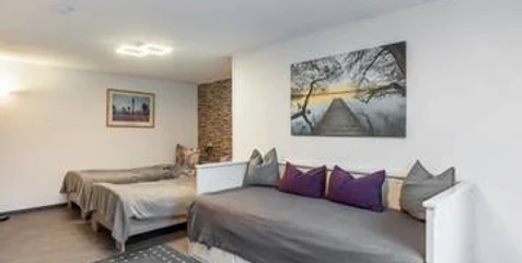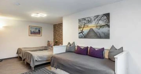 Die 35 Quadratmeter große, gemütliche Ferienwohnung Am Wiesbachtal im Wehrheimer Ortsteil Pfaffenwiesbach liegt direkt an einem wunderschönen Wanderweg. Die Wohnung befindet sich im Souterrain eines Einfamilienhauses und verfügt über einen separaten Eingang. Der großzügige, frisch renovierte Wohn-/Schlafbereich enthält zwei Einzelbetten (die auch zusammengeschoben werden können) und ein Schlafsofa. Über einen kleinen, ebenfalls frisch renovierten Flur mit Garderobe gelangt man in die voll ausgestattete Wohnküche mit Backofen, Cerankochfeld, Mikrowelle, Spülmaschine, Kühlschrank mit Gefrierfach, Toaster, Eierkocher und vielem mehr. Das moderne Tageslichtbad ist ebenfalls frisch renoviert und verfügt über eine Dusche, ein großes Waschbecken und ein Wand-WC. Bettwäsche, Handtücher, WLAN, SAT-TV sowie Nebenkosten wie Strom und Heizung sind inklusive. Ein Parkplatz befindet sich direkt am Haus. Gartenhütte, Liegewiese mit Tisch und Stühlen, Grill und Feuerschale können gerne genutzt werden. Alle Räume verfügen über Tageslichtfenster. Es handelt sich um eine Nichtraucherwohnung, Haustiere sind nicht gestattet. Freizeitangebote in der Nähe: - Umfangreiche Wanderwege in ruhiger Natur mit Wiesen und Wäldern - Komfortables Radtourennetz - Freilichtmuseum Hessenpark - Freizeitpark Lochmühle - Römerkastell und Museum Saalburg - Kastell Kapersburg - Schloss Kransberg - Heimat- und Dorfmuseum Pfaffenwiesbach - Katholische Kirche St. Georg Pfaffenwiesbach - Katholische Kirche Friedrichsthal - Kinderspielplatz - Bolzplatz Gute Anbindung an Frankfurt am Main mit Hauptbahnhof, Flughafen und Messe (in ca. 30 Minuten mit dem Auto erreichbar). Weitere Informationen zu Restaurants, Gaststätten und Freizeitmöglichkeiten finden Sie auf der Homepage von Wehrheim unter der Rubrik Fremdenverkehr. Wir wünschen Ihnen viel Spaß bei Ihrem Aufenthalt!