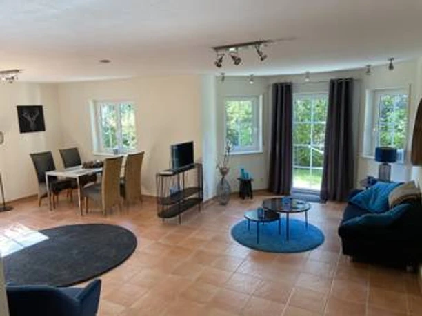 Ankommen und Wohlfühlen in der schönen Souterrain-Ferienwohnung Taunusglück in Oberems (Glashütten/Hochtaunus). Die moderne, lichtdurchflutete und gemütlich eingerichtete Souterrain-Ferienwohnung Taunusglück ist ein Ort zum Ankommen und Wohlfühlen. Genießen Sie Ihr Frühstück auf der Terrasse im Garten, lassen Sie Ihre Seele baumeln in der Hängematte oder im Liegestuhl. Die Ferienwohnung Taunusglück lässt keine Wünsche offen für einen angenehmen Aufenthalt mit viel Ruhe und Entspannung. Durch die Lage am Fuße des Großen Feldbergs kommen auch sportliche Aktivitäten wie Radfahren, Mountainbiking und Wandern im Naturpark Hochtaunus nicht zu kurz. Ihre Gastgeber -Dagmar und Jürgen Bremora- kennen den Taunus sehr gut und sind hier aufgewachsen. Beruflich und durch viele Reisen konnten wir entfernte Urlaubsregionen kennenlernen. Doch es ist immer wieder schön, nach Hause zu kommen. Wir schätzen unsere Wohlfühlregion Hochtaunus sehr. Aus Liebe zur Heimat möchten wir mit unserer Ferienwohnung Taunusglück Ihnen die Möglichkeit geben, diese wundervolle Gegend zu entdecken. Schnüren Sie Ihre Wanderschuhe oder starten Sie mit dem Fahrrad am Fuße des Großen Feldbergs. Mit vielen Wiesen, Wald und dem Naturpark Hochtaunus beginnt für Sie die Erholung direkt vor der Haustür. Die schönen Fachwerkstädtchen Königstein, Idstein und Bad Camberg sind in ca. 10 Autofahrminuten zu erreichen und auf jeden Fall einen Besuch wert. Die Großstädte Frankfurt, Wiesbaden, Bad Homburg oder Limburg liegen ca. 30 Minuten mit dem Auto entfernt. Sie lieben Burgen und Schlösser, möchten den Limeserlebnispfad Hochtaunus und das Römerkastell Saalburg (UNESCO Welterbe) erkunden oder die Vielfalt des Freilichtmuseums Hessenpark kennenlernen? Dann sind Sie hier richtig. Die Ferienwohnung Taunusglück lässt keine Wünsche offen für einen angenehmen Aufenthalt mit viel Ruhe und Entspannung. Ihre Gastgeber sind gerne für Sie da und beraten Sie über Ausflugs- und Restaurant-Tipps in der Region. Gastronomie ist fußläufig zu erreichen und Einkaufsmöglichkeiten, weitere Restaurants sowie ein Café sind 2 km entfernt. Auf Wunsch kann Ihr 4-beiniger, wohlerzogener Freund auch mal betreut werden, wenn Sie einen Tag in der Stadt planen. Sehr gute Anreisemöglichkeiten aus dem Süden, Norden, Westen und Osten über z. B. A3, A5 und B8.