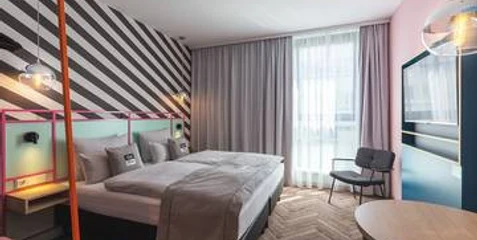 Das the niu Belt (engl. Gürtel) spielt mit seinem Namen auf die Lage im Frankfurter Speckgürtel an, der besonders für seine gute Verkehrsanbindung bekannt ist Das the niu Belt (engl. Gürtel) spielt mit seinem Namen auf die Lage im Frankfurter Speckgürtel an, der besonders für seine gute Verkehrsanbindung bekannt ist. Dieses Hotel lädt Gäste und Besucher zum Entspannen in ruhiger Vorortsatmosphäre mit perfekter Anbindung ein. Sowohl das Stadtzentrum Frankfurts als auch der Flughafen sind vom the niu Belt aus perfekt erreichbar. Das Interior-Design des Hotels vereinigt warme Farbakzente mit wohliger Zuhause-Atmosphäre. Innovative Ausstattung und offene Living Lobby treffen dabei auf einzigartige Murals. Hinweis: Ggf. fällt eine Bettensteuer für diese Destination an.
