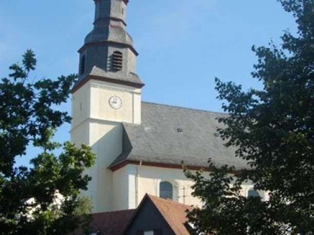 Geschichte:Als einziger der Weilroder Ortsteile hat Hasselbach die Zeiten der Reformation, religiös gesehen, unverändert überstanden – und ist heute katholische Enklave der Großgemeinde. Denn während 1526 Graf Philipp von Nassau-Weilburg in seinen Weilnauer Gebieten die Reformation einführte, blieb Hasselbach katholisch, weil es dem Kurfürst-Erzbischof von Trier unterstand. Am 22. Oktober 1749 fielen sowohl die Hasselbacher Kirche, mitsamt Altären und Inventar, als auch die umstehenden Häuser und Scheunen einem verheerenden Feuer zum Opfer – und am 11. Mai 1751 begann der Neubau am alten Standort: auf einem Felsen, mitten im Dorf. Am 13. Juli wurde sie zusammen mit den drei neuen Glocken in einer feierlichen Zeremonie gesegnet. Lichtdurchflutet ist das Hasselbacher Gotteshaus, eine von West nach Ost gerichtete Saalkirche mit eingezogenem Chor, Muldengewölbe und Turm im Westen. Eine Eigentümlichkeit allerdings hat die Pfarrkirche: einen schiefen Turm, der sich etwa 40 Zentimeter aus dem Lot befindet. Einsturzgefahr besteht jedoch nicht. Immer wieder musste in der langen Kirchengeschichte saniert und renoviert werden. Heute jedoch kann man die beim Kirchenbau ursprünglich vorgenommene Farbgestaltung bewundern. In all den Jahren ist es der Kirche auch gelungen, ihre ursprüngliche Barockausstattung weitgehend zu erhalten