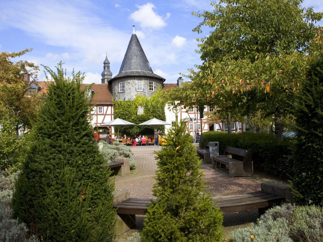 Prägender Teil der Fachwerkhäuserzeile, die auf den Fundamentresten der ehemaligen Stadtmauer errichtet wurde, ist der übrig gebliebene Rundturm der nach 1652 errichteten Stadtbefestigung. Ursprünglich wohnte hier der Gerichtsdiener. Dieser Umstand gab dem Turm den Namen Büttelturm. Frühstens ab 1795 diente das Bauwerk als Synagoge (Betstube). Sie wurde in der Pogromnacht am 09.11.1938 verwüstet. Die Fachwerkhäuser zu beiden Seiten des Turms stammen aus dem 17. und 18. Jh. Anfang der 1980er Jahre erfolgte die Sanierung. 1983 eröffnete in dem Turm mit angrenzendem Fachwerkhaus eine Weinstube.
