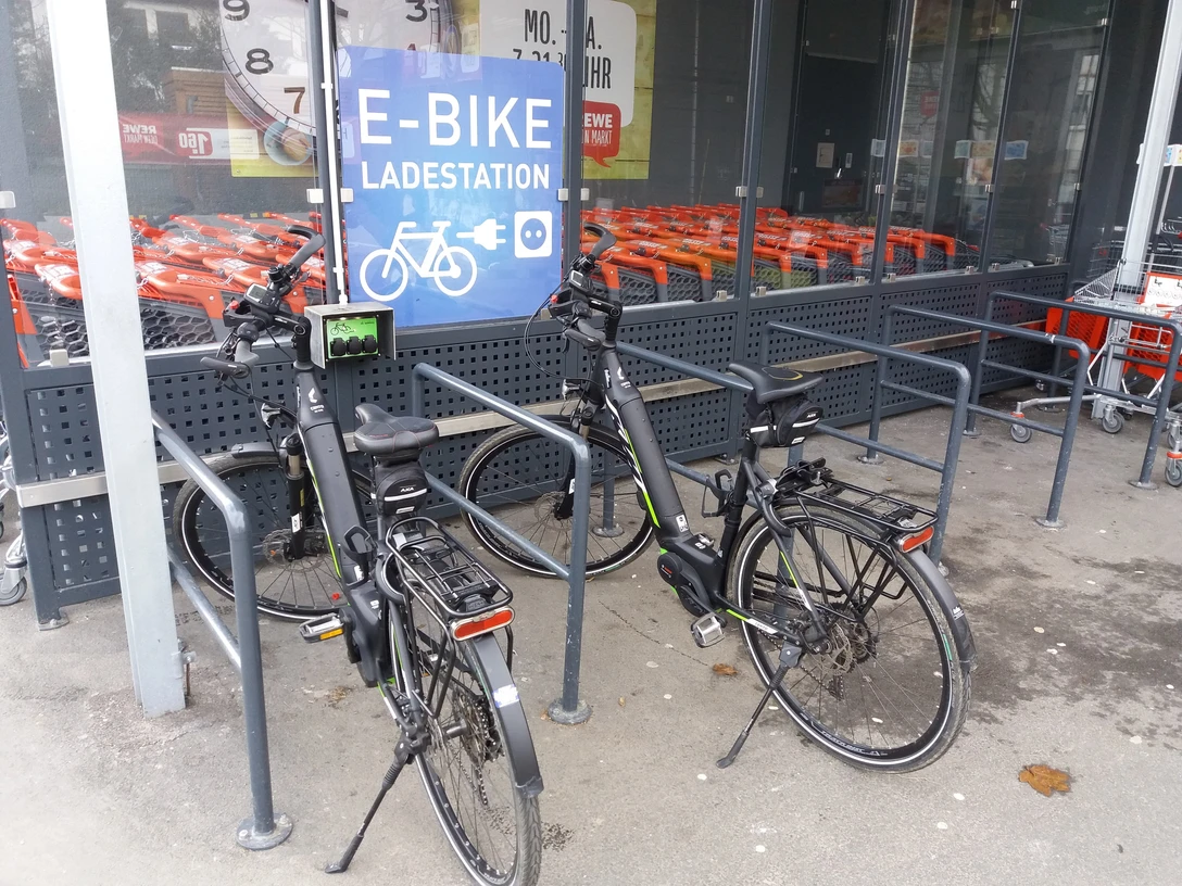 Da E-Bikes inzwischen auch bei Ausflüglern immer beliebter werden, hat der REWE Markt in der Bahnhofstraße (in direkter Nähe zur Wehrheimer Mitte, wo sich auch die Tourist-Info befindet) eine Ladestation im Eingangsbereich errichtet, an der die Akkus von E-Bikes kostenfrei an drei Schuko-Steckdosen aufgeladen werden können.