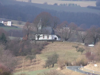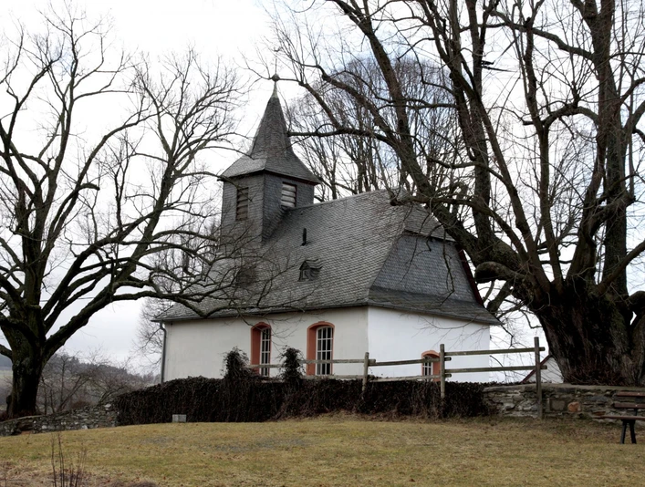 Geschichte:Wahrzeichen des Weilröder Ortsteils Oberlauken ist die über dem Ort, eingerahmt von alten Linden, liegende Kapelle. Ihre heutige Gestalt bekam sie um 1811, als die Dorfbewohner den alten Bau bis auf die Grundmauern niederlegten. Die Wurzeln der Kirche reichen jedoch bis ins 15. Jahrhundert zurück. Besonders eindrücklich sind auch die als Naturdenkmäler geschützten Bäume um die Kirche. Eine der großen Linden zerbrach, doch die drei Teile erholten sich und wuchsen selbständig weiter.