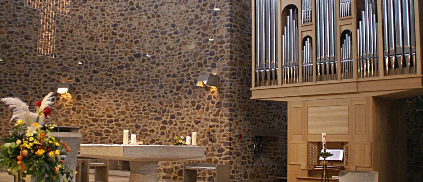 Geschichte:Am 5. Juni 1965 wurde die neugebaute Martinskirche an der Wiesbadener Straße von Bischof Wilhelm Kempf aus Limburg feierlich konsekriert.Besonderheiten:Der Architekt war Professor Johannes Krahn aus Frankfurt, einer der bekanntesten modernen Kirchenbauer seiner Zeit. Der Bau erinnert an eine altkirchliche Basilika: Der Raum ist klar definiert auf den Altar hin bezogen. Er nimmt die liturgischen Vorstellungen und Neuerungen des 2. Vatikanischen Konzils vorweg: es gibt z. B. keine Kommunionbank, und der Tabernakel steht nicht mehr auf dem Altar, sondern auf einer eigenen Säule. Das Fensterband unter der Decke gibt dem Bau aus gemauerten Natursteinen eine einzigartige Leichtigkeit. Die großartige Geschlossenheit und die herbe Nüchternheit dulden keine Nebensächlichkeiten.