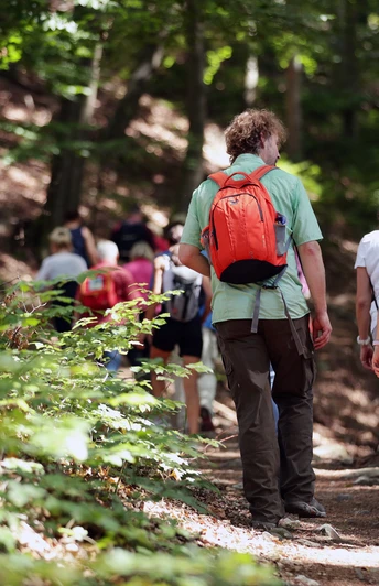- Auf weitgehend sonnigem Wegabschnitt zunächst stimulierend, auf dem Rückweg gedämpfte Reizintensität im Schutz des Waldes